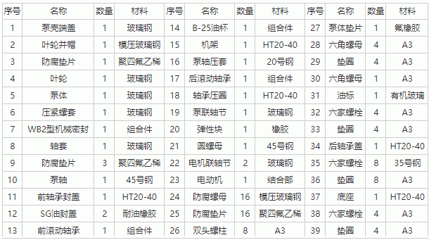 FS型玻璃鋼離心泵零件材料圖: