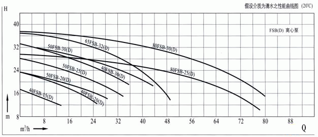 FSB-D型氟塑料合金離心泵性能曲線圖: