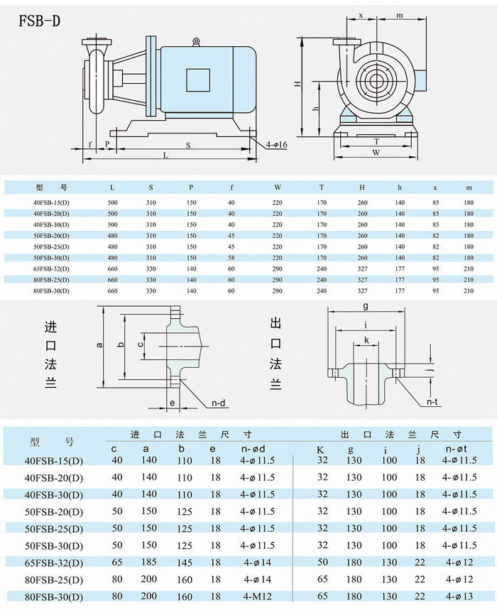 FSB-D型氟塑料合金離心泵型號(hào)說明: