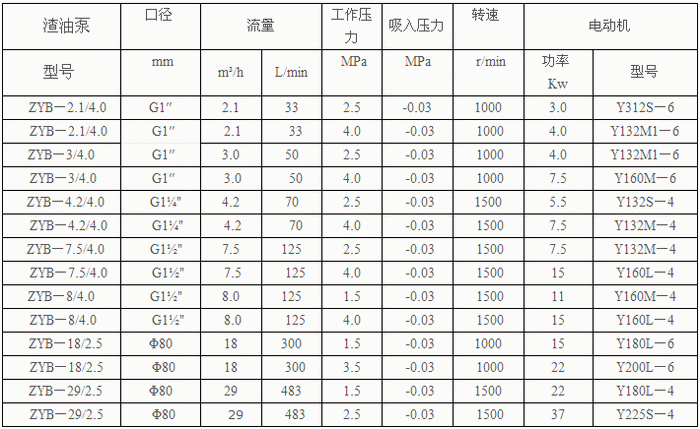 ZYB-B可調(diào)壓渣油泵性能參數(shù)表: