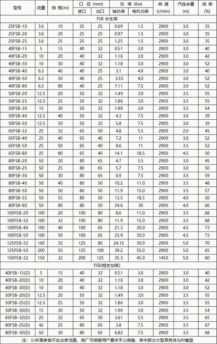 FSB型氟塑料泵性能參數表: