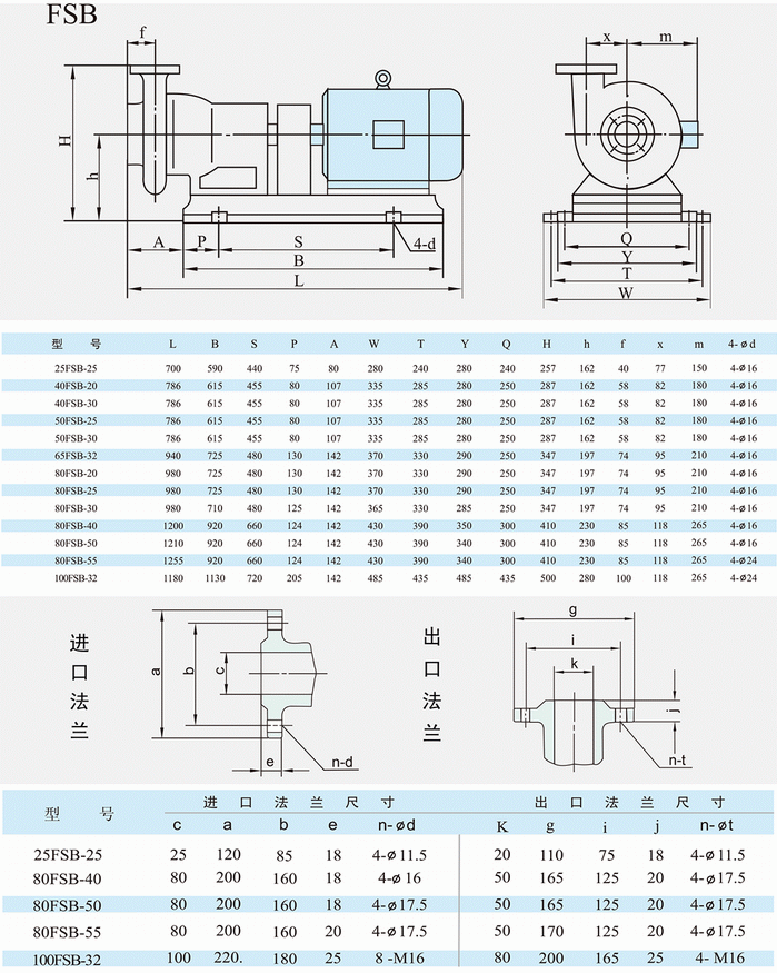 FSB-L型氟塑料合金離心泵安裝尺寸表: