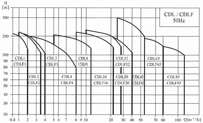 CDLF型不銹鋼立式多級(jí)離心泵性能曲線圖: