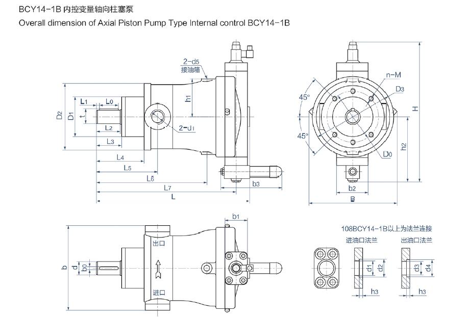 BCY14-1B型高壓軸向柱塞泵外形尺寸: