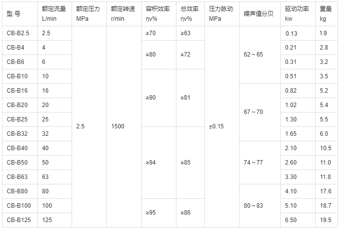 CB-B齒輪油泵性能參數(shù)表:
