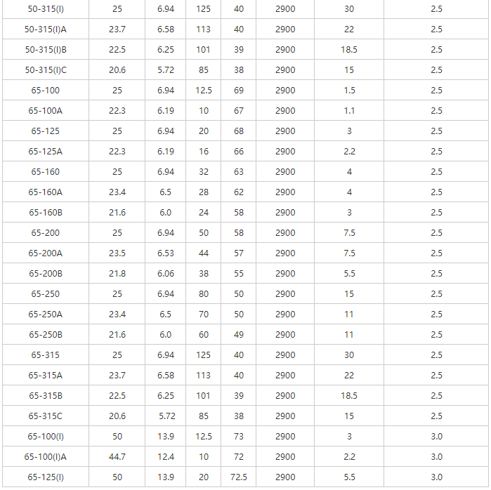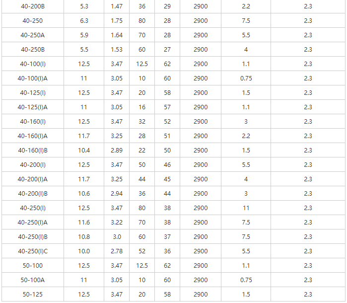 YG型管道離心油泵性能參數(shù)表-2
