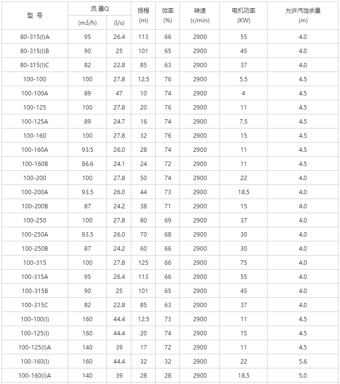 YG型管道離心油泵性能參數(shù)表-4