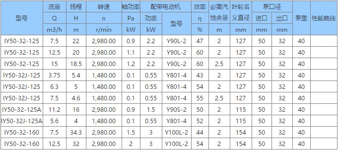IY型單級(jí)單吸離心油泵性能參數(shù)表:
