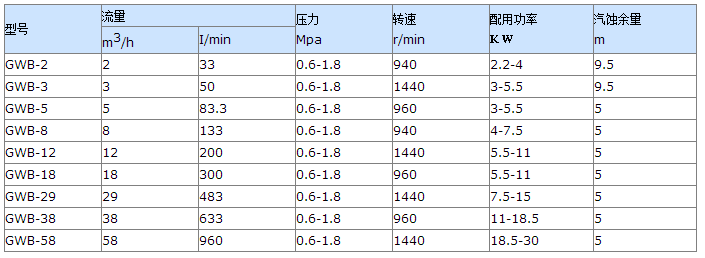 GWB外潤滑齒輪油泵性能參數(shù)表: