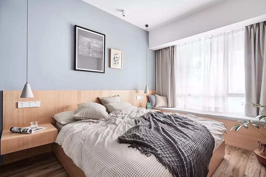 有2個(gè)臥室,還有1個(gè)小書(shū)房,布局真的很不錯(cuò)。整個(gè)家大量搭配了原木家具,清新又自然,文藝又有格調(diào),好喜歡這種休閑又放松的家居氛圍。很多人問(wèn)我客廳刷什么顏色的乳膠漆好,我覺(jué)得淺灰色不錯(cuò),客廳采光特別的給力,好喜歡休閑飄窗的設(shè)計(jì),視野十分開(kāi)闊,看書(shū)休憩都特別的舒服。淺灰色調(diào)不會(huì)顯得過(guò)于沉穩(wěn),在布藝中加些暖色,會(huì)更顯休閑溫馨感。軟裝搭配細(xì)節(jié)放大看一看,哈哈,質(zhì)感真的不錯(cuò),黃色抱枕真的超愛(ài)了!搭配個(gè)小邊幾,擺上綠植,清新又養(yǎng)眼,裝修的時(shí)候墻面別忘了預(yù)留插頭,平時(shí)充電會(huì)更方便些.主臥的采光也特別棒,整個(gè)空間氛圍清新又自然。很喜歡床頭木質(zhì)護(hù)墻板的設(shè)計(jì),和臥床、床頭柜融為一體,十分的協(xié)調(diào)。廚房雖然面積不大,但也打造出U型布局,動(dòng)線合理,操作方便。很喜歡這種時(shí)尚中融入清新色調(diào)的搭配了。冰箱也有了歸屬感!