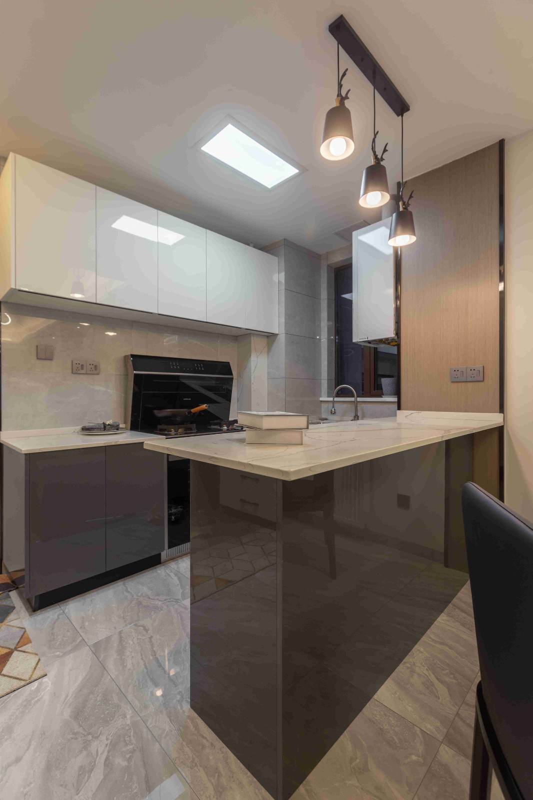 原戶型里,廚房不大,加上業(yè)主的喜好,因此考慮敞開式吧臺(tái)結(jié)合中式大圓桌,加上多個(gè)收納柜,滿足了女主人的需求。