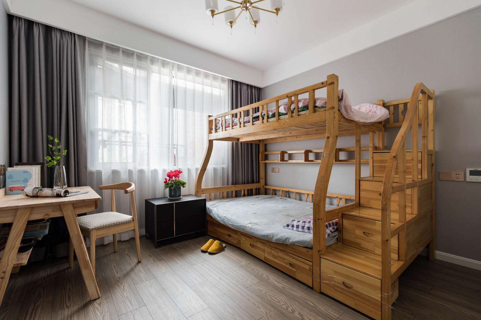 小飄窗被打造成簡單的休閑區(qū),彌補(bǔ)了房間空間的不足,有一遇之地可視聽人間煙雨,可收攬冬日陽光的暖意。
